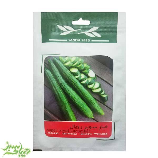 خیار سوپر رویال از سبزیجات خوش طعمی است که باعث ایجاد شادابی می شود و به عنوان یک ماده اصلی در بسیاری از سالادها به کار میرود.خیار سوپر رویال دارای ویژگی هایی ست که کمتر کسی از آن مطلع بوده است ؛ از جمله اینکه خیار خام پوست کنده نشده دارای پتاسیم، ویتامین K، ویتامین Aویتامین C و منبع خوبی از فسفر و منگنز، منیزیم، اسید پانتوتنیک و همچنین کمی سدیم، کلسترول و چربی اشباع شده است.هم چنین اگر شما احساس خستگی می کنید به جای استفاده از مواد کافئین دار از خیار رویال استفاده کنید چراکه منبع خوبی از کربوهیدرات و ویتامین B است. برای حذف آفات باغ می توانید از قطعات خیار سوپر رویال استفاده کنید ؛ آنها را در یک قوطی قرار دهید و در باغچه قرار دهید آلومینیوم و مواد شیمیایی موجود درخیار سوپر رویال باعث حذف آفت کش ها می شود.